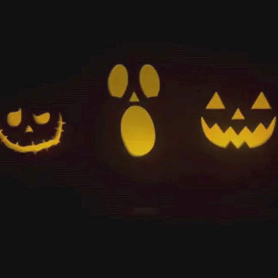 This beautifully hand-crafted set of 3 wooden Jack O' Lanterns is sure to be a focal point of your Halloween decorations year after year! All three pumpkins, with a wide choice of face options available, are connected and sit snugly side by side on one single base.
